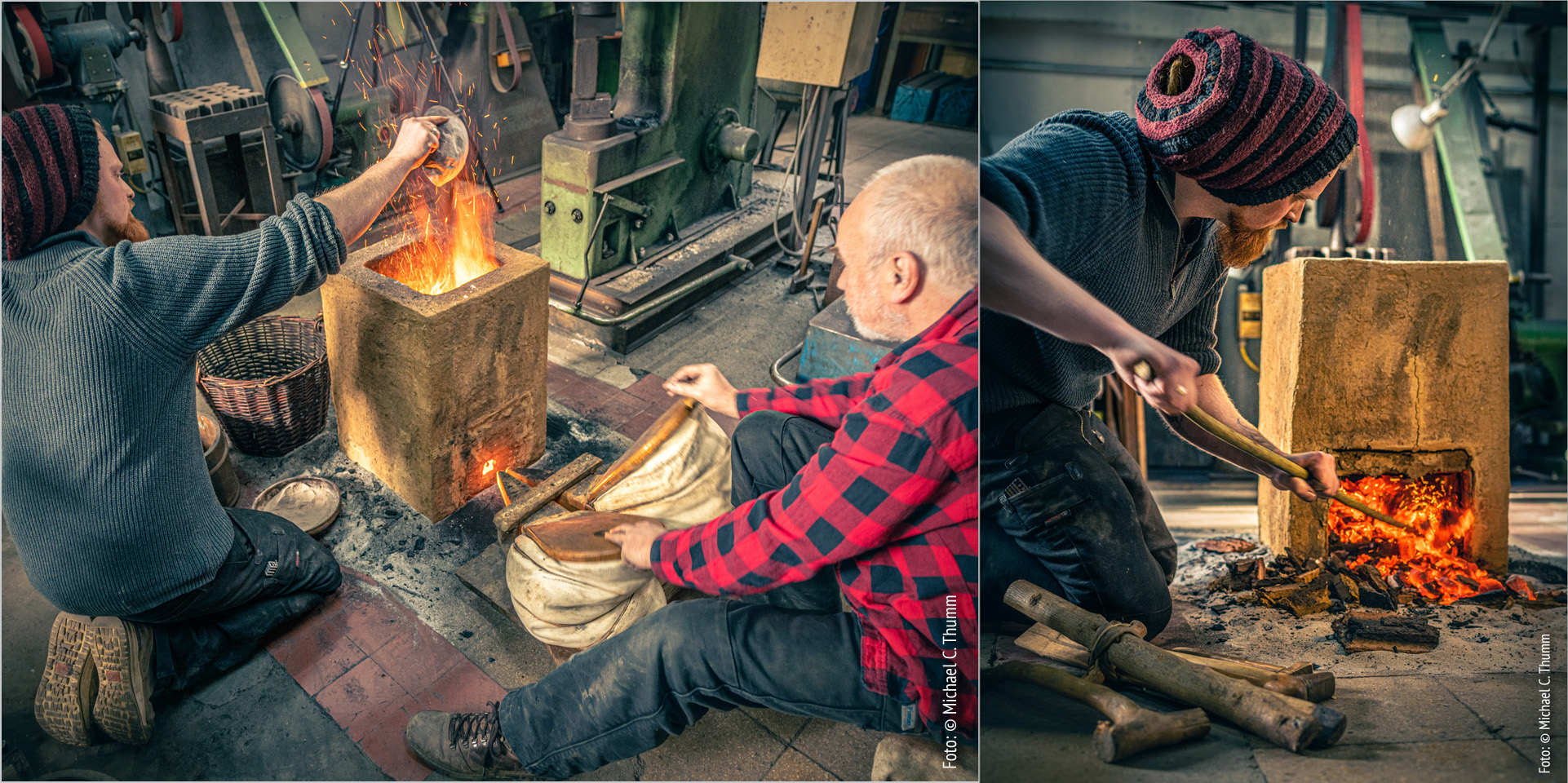 Filmaufnahmen zu einem Projekt "(Kupferverhüttung, Beschicken des Ofens und Ofenöffnung)" in der Schmiede/Blaubeuren